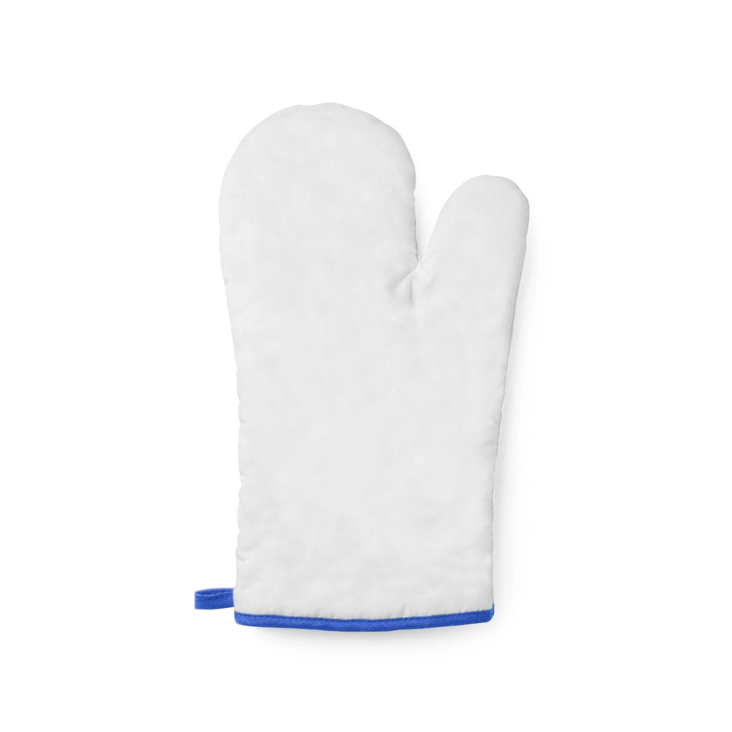 Rękawica kuchenna- biała z chabrowym wykończeniem pod nadruk