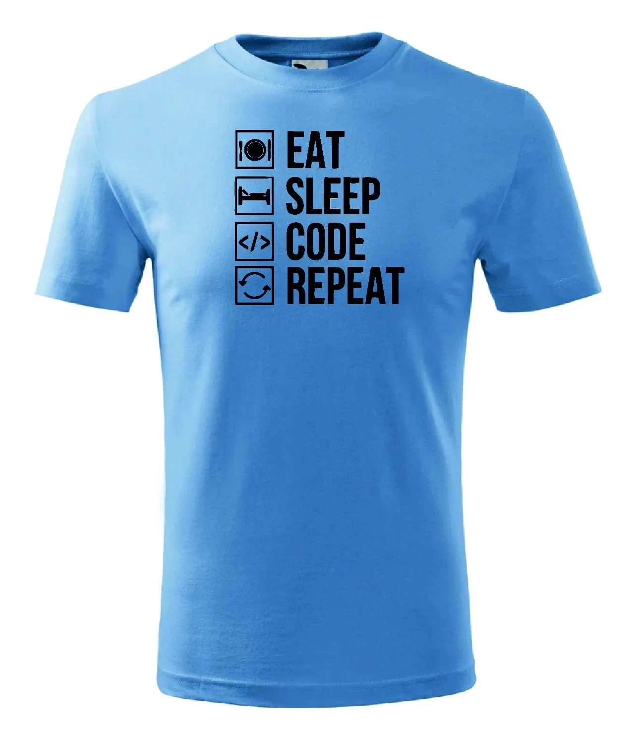 T-shirt męski "eat sleep code repeat" to idealna propozycja dla każdego programisty, informatyka czy miłośnika kodowania, który oddaje się swojej pracy z pasją. Doskonały jako prezent na urodziny czy imieniny. Oferujemy wiele kolorów do wyboru oraz trwały nadruk wykonany z najlepszych materiałów. Nasz T-shirt jest gwarancją jakości i stylu. Dostępny w 10 różnorodnych kolorach, aby dopasować się do Twojego gustu. Daj upust swojej kreatywności i pasji do kodowania - wybierz T-shirt męski "eat sleep code repeat".