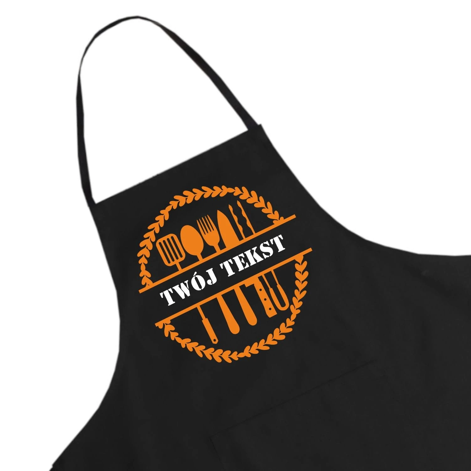 Fartuch kuchenny czarny z nadrukiem i twoim tekstem pomysł na prezent W4