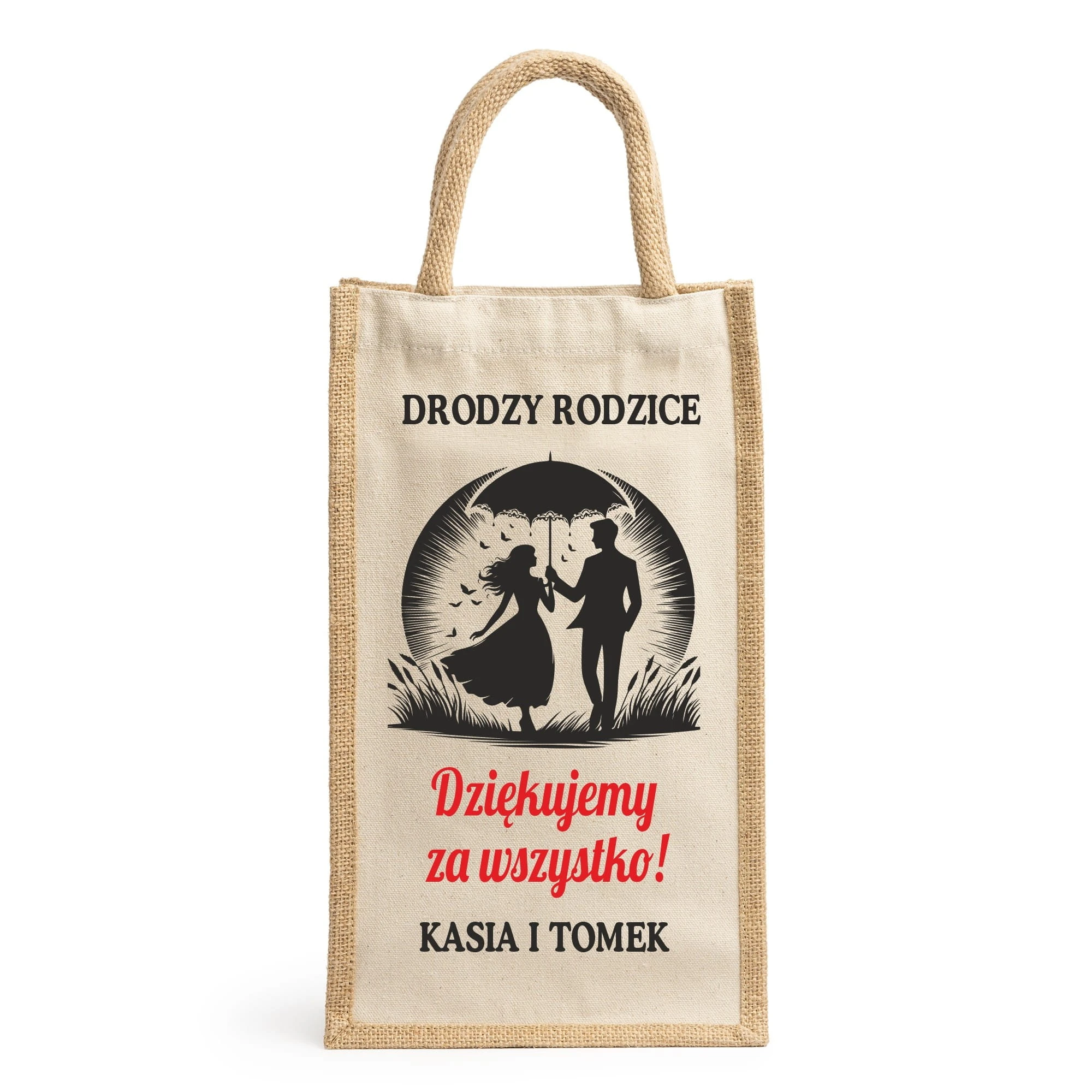 Torba bawełniana na dwie butelki z nadrukiem Drodzy Rodzice idealna na prezent W2