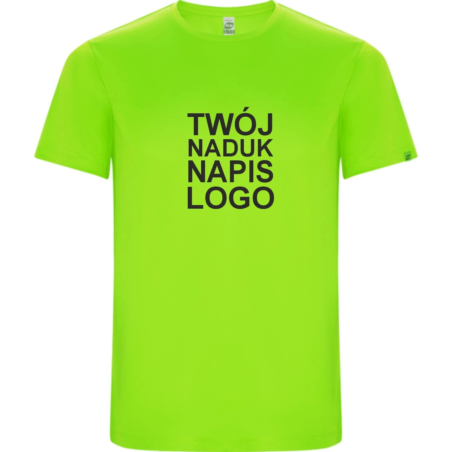 T-shirt męski sportowy szybkoschnący z twoim nadrukiem logo zielony fluo