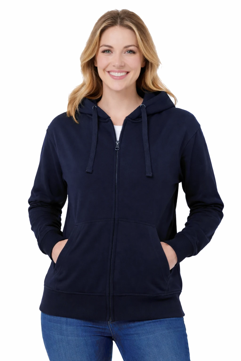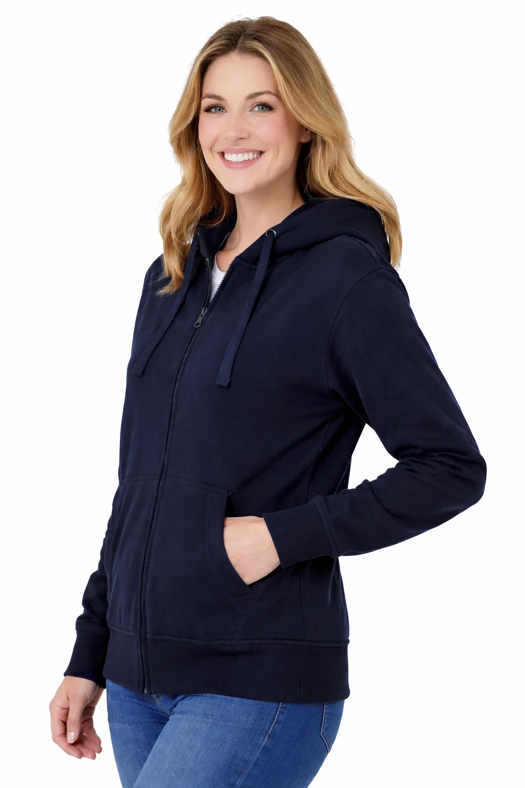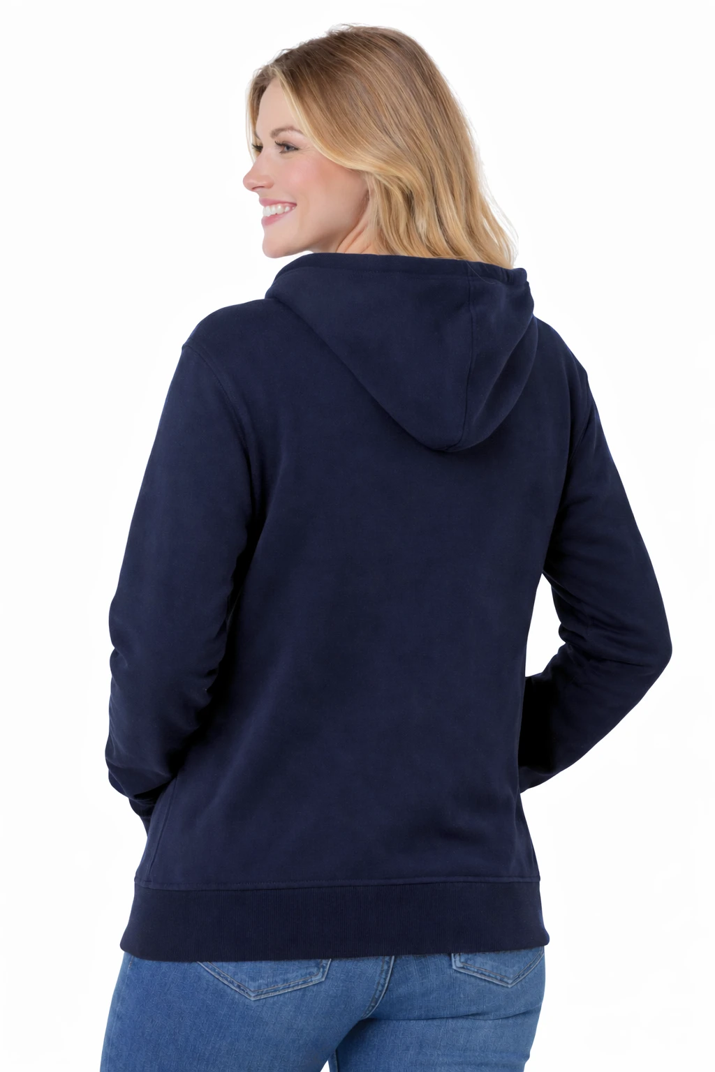 Bluza damska z kapturem zapinana na zamek granatowa