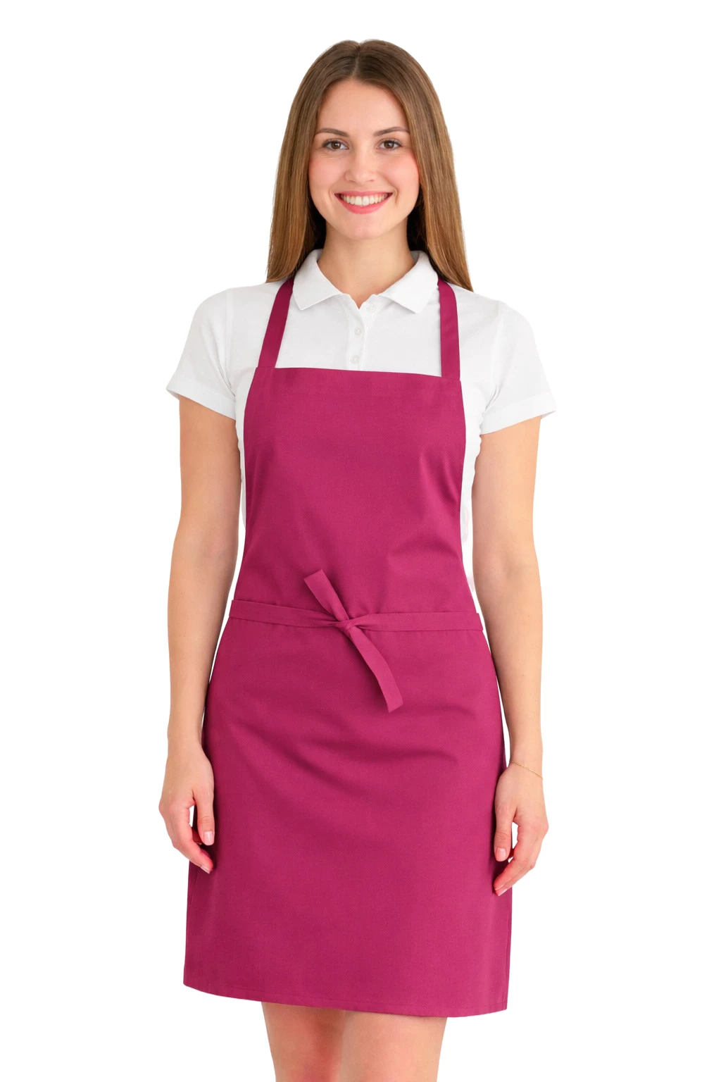 Fartuch wykonany został z mieszanki 50% bawełny i 50% poliestru o gramaturze 165–185 g/m². Dzięki temu jest lekki, przewiewny i jednocześnie odporny na częste pranie. Można go prać w temperaturze do 65°C, co pozwala na zachowanie higieny i świeżości. Kolor rózowy pozostaje intensywny nawet po wielu praniach, a materiał nie kurczy się i nie traci swojego kształtu.