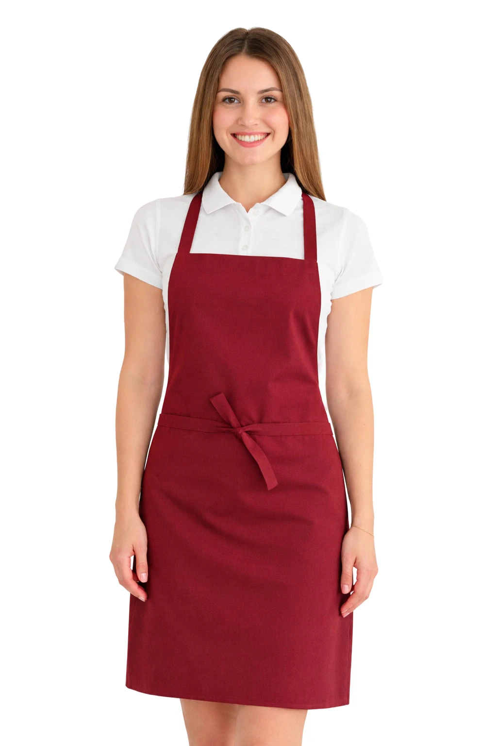 Fartuch wykonany został z mieszanki 50% bawełny i 50% poliestru o gramaturze 165–185 g/m². Dzięki temu jest lekki, przewiewny i jednocześnie odporny na częste pranie. Można go prać w temperaturze do 65°C, co pozwala na zachowanie higieny i świeżości. Kolor bordowy pozostaje intensywny nawet po wielu praniach, a materiał nie kurczy się i nie traci swojego kształtu.