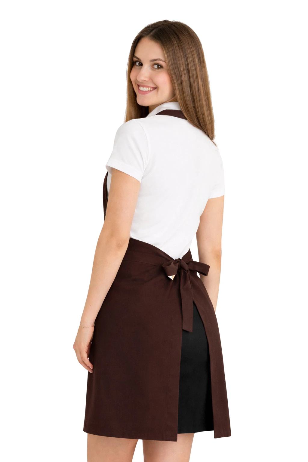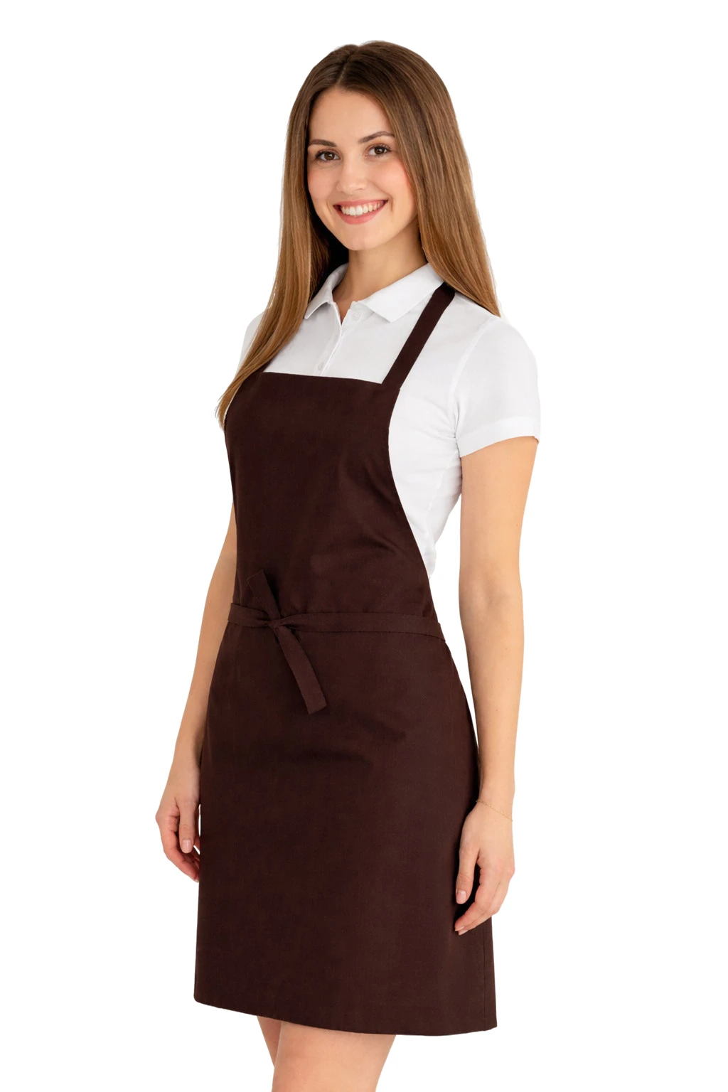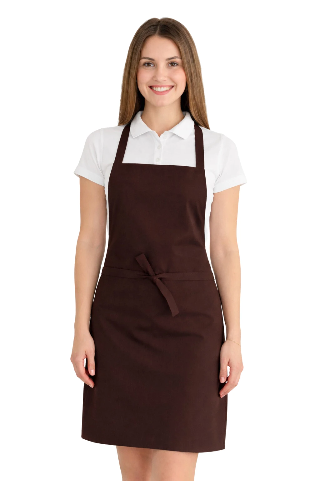 Fartuch wykonany został z mieszanki 50% bawełny i 50% poliestru o gramaturze 165–185 g/m². Dzięki temu jest lekki, przewiewny i jednocześnie odporny na częste pranie. Można go prać w temperaturze do 65°C, co pozwala na zachowanie higieny i świeżości. Kolor ciemny brązowy pozostaje intensywny nawet po wielu praniach, a materiał nie kurczy się i nie traci swojego kształtu.