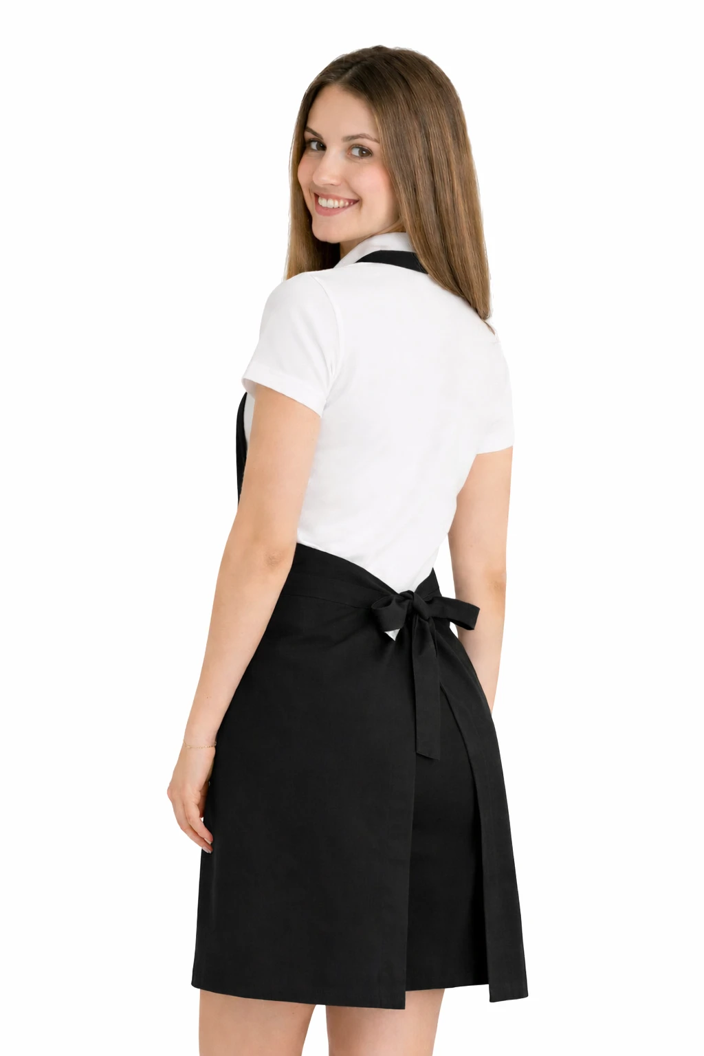 Fartuch wykonany został z mieszanki 50% bawełny i 50% poliestru o gramaturze 165–185 g/m². Dzięki temu jest lekki, przewiewny i jednocześnie odporny na częste pranie. Można go prać w temperaturze do 65°C, co pozwala na zachowanie higieny i świeżości. Kolor czarny pozostaje intensywny nawet po wielu praniach, a materiał nie kurczy się i nie traci swojego kształtu.