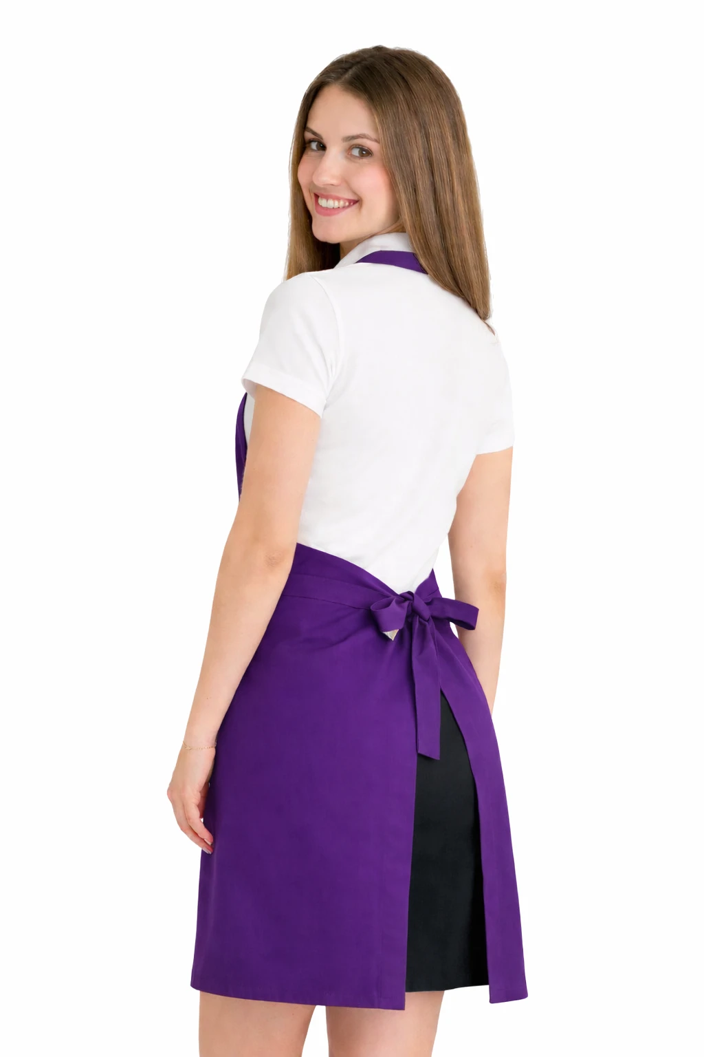 Fartuch wykonany został z mieszanki 50% bawełny i 50% poliestru o gramaturze 165–185 g/m². Dzięki temu jest lekki, przewiewny i jednocześnie odporny na częste pranie. Można go prać w temperaturze do 65°C, co pozwala na zachowanie higieny i świeżości. Kolor fioletowy pozostaje intensywny nawet po wielu praniach, a materiał nie kurczy się i nie traci swojego kształtu.