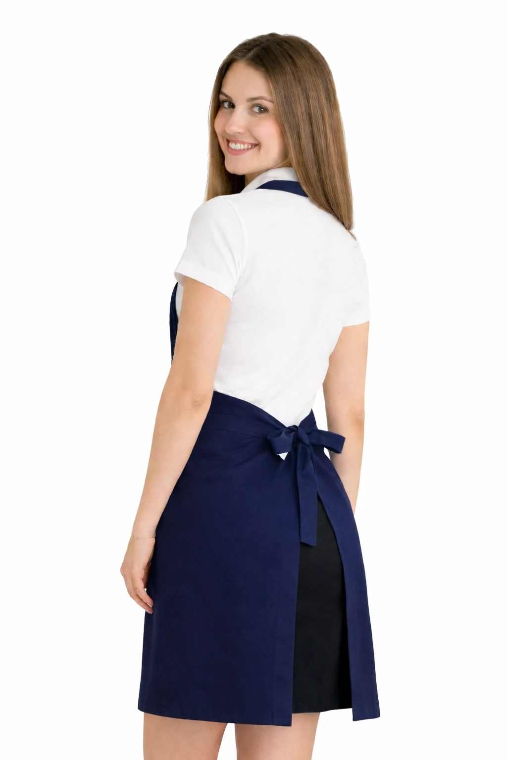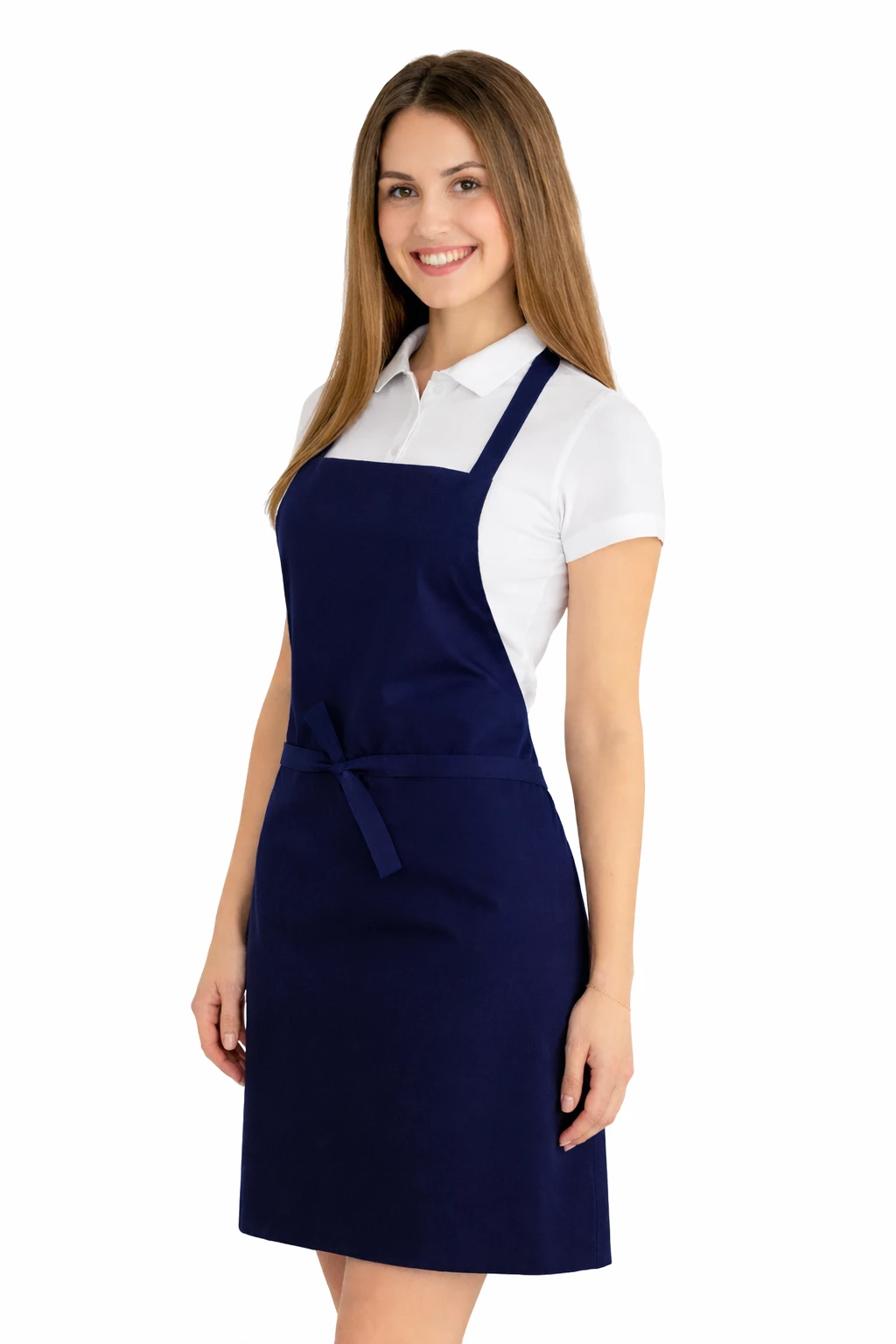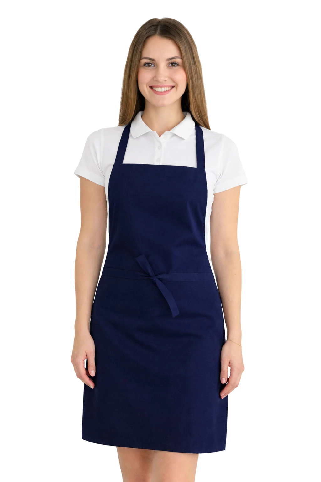 Fartuch wykonany został z mieszanki 50% bawełny i 50% poliestru o gramaturze 165–185 g/m². Dzięki temu jest lekki, przewiewny i jednocześnie odporny na częste pranie. Można go prać w temperaturze do 65°C, co pozwala na zachowanie higieny i świeżości. Kolor granatowy pozostaje intensywny nawet po wielu praniach, a materiał nie kurczy się i nie traci swojego kształtu.