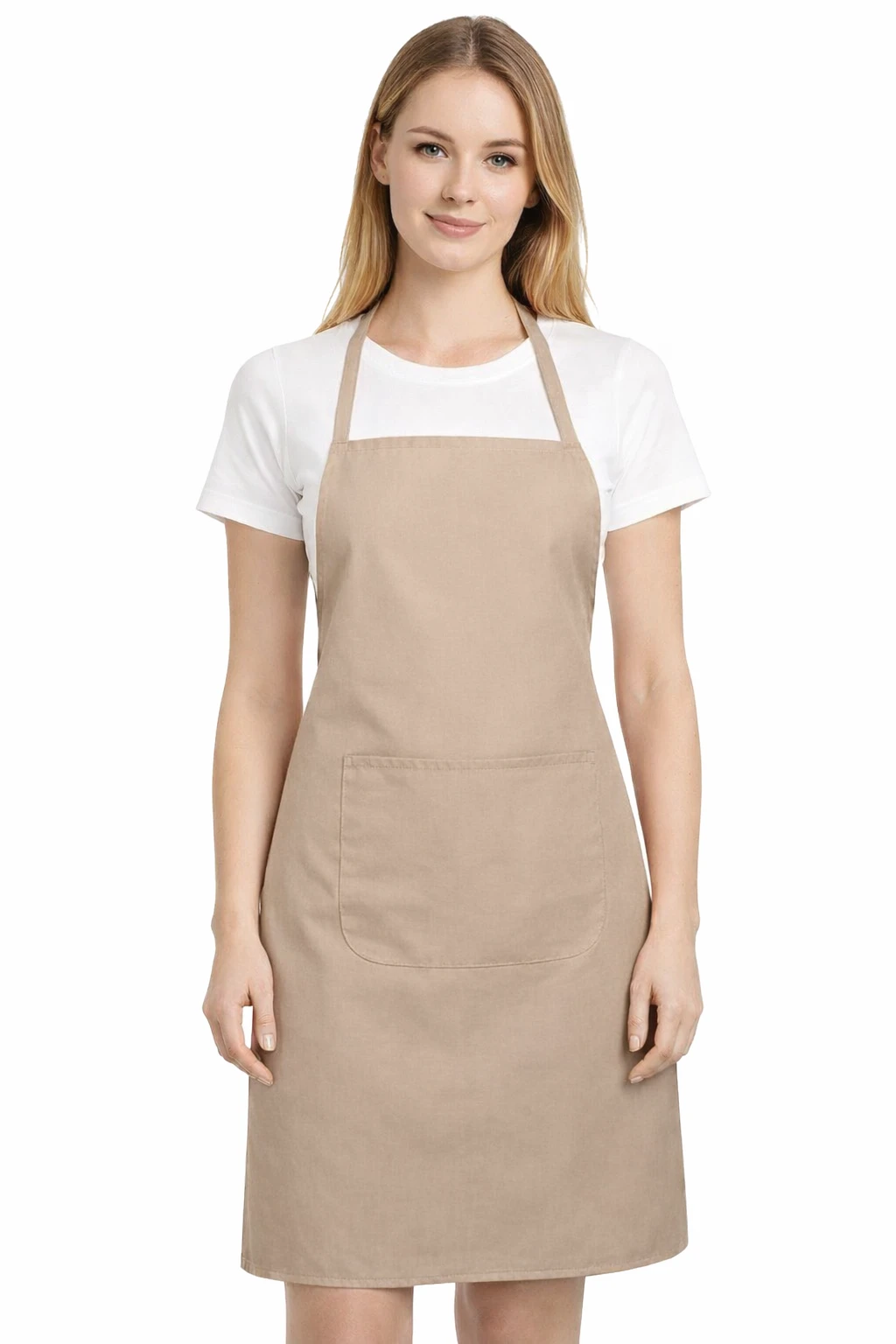 Beżowy kolor fartucha sprawia, że model szczególnie dobrze nadaje się do sublimacji oraz innych metod znakowania. Gładka powierzchnia materiału umożliwia uzyskanie wyraźnych i trwałych nadruków, co czyni go doskonałym wyborem dla firm, które chcą wyróżnić swoją markę.