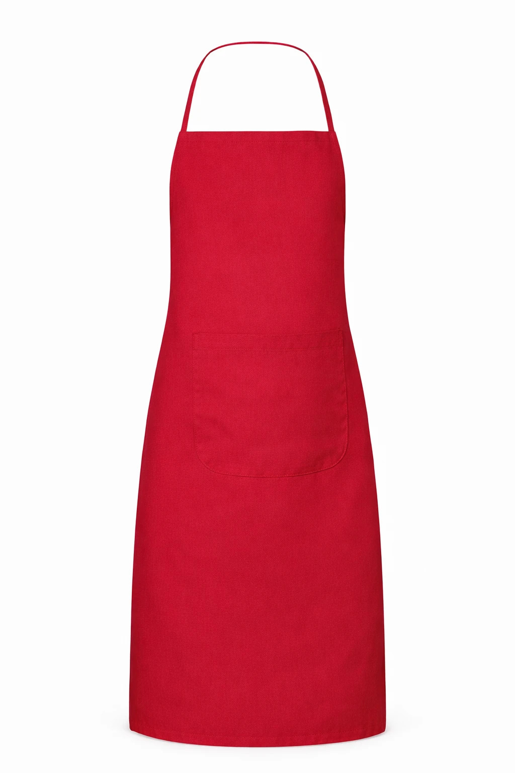Fartuszek kuchenny CHEF w kolorze czerwonym to lekki i funkcjonalny model, który doskonale sprawdzi się jako odzież gastronomiczna oraz reklamowa. Wykonany z cienkiej, gładkiej tkaniny poliestrowej, zapewnia komfort pracy i estetyczny wygląd, a jednocześnie stanowi idealną bazę pod nadruk lub haft logo.