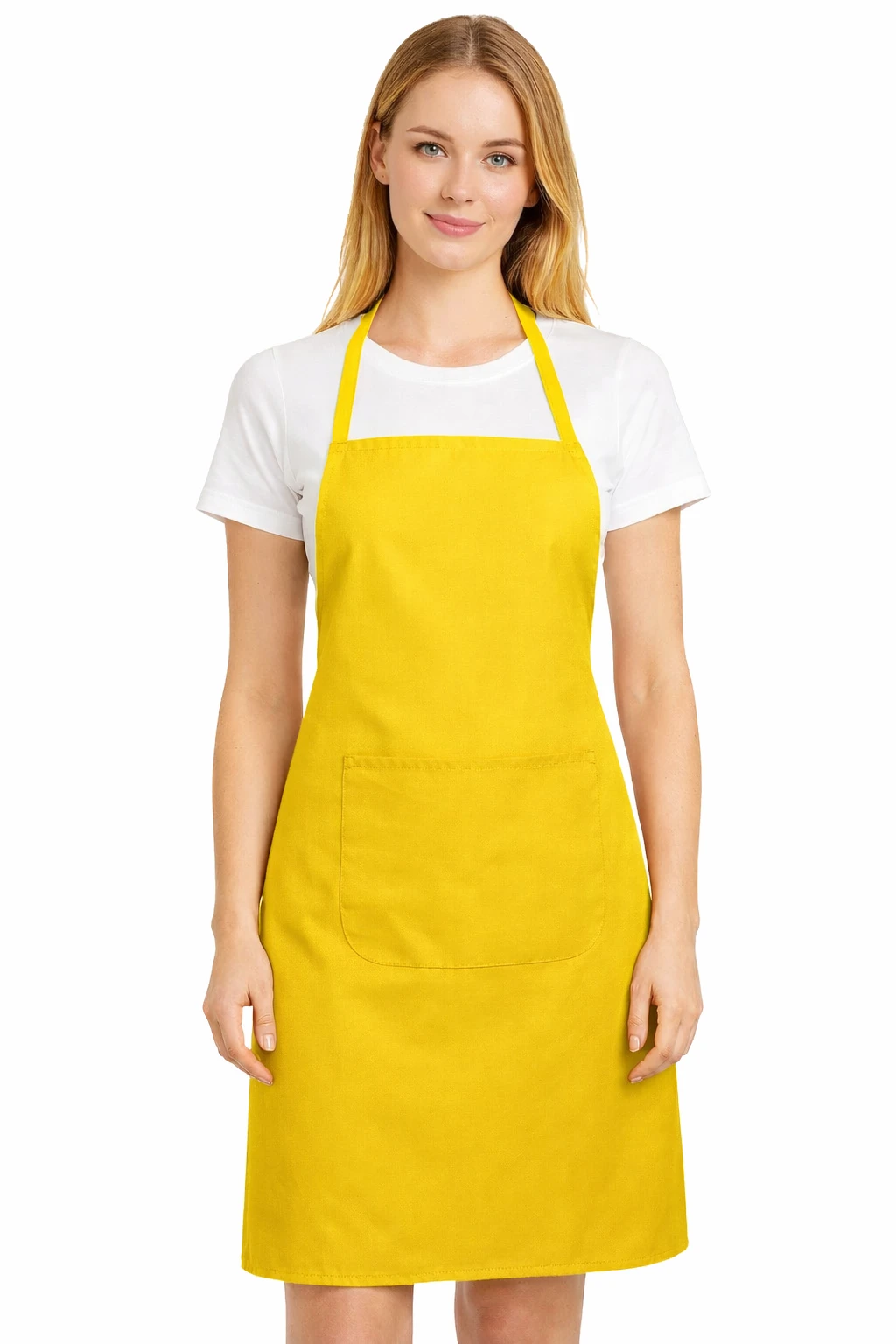 Fartuszek kuchenny CHEF w kolorze żółty to lekki i funkcjonalny model, który doskonale sprawdzi się jako odzież gastronomiczna oraz reklamowa. Wykonany z cienkiej, gładkiej tkaniny poliestrowej, zapewnia komfort pracy i estetyczny wygląd, a jednocześnie stanowi idealną bazę pod nadruk lub haft logo.