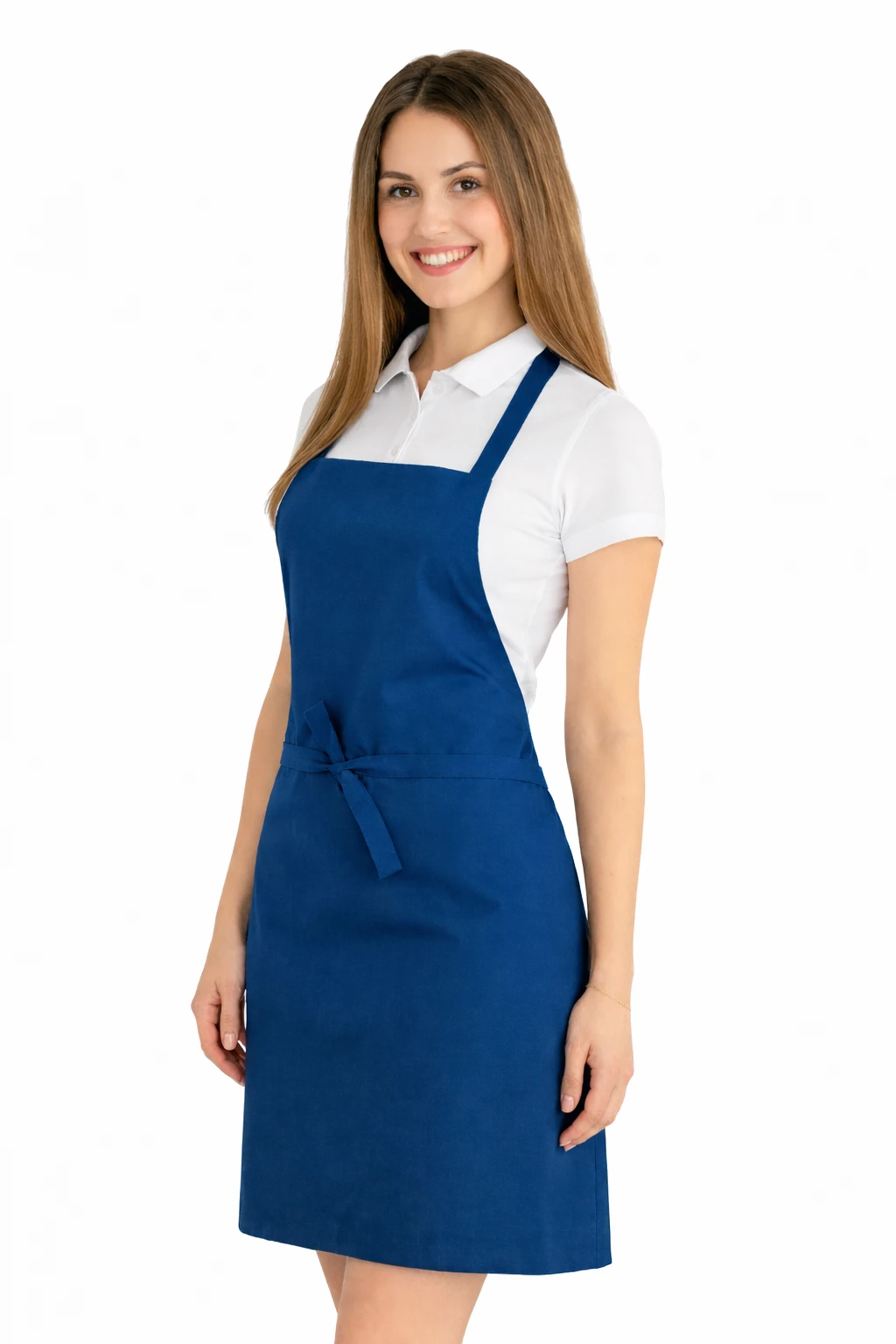 Fartuch wykonany został z mieszanki 50% bawełny i 50% poliestru o gramaturze 165–185 g/m². Dzięki temu jest lekki, przewiewny i jednocześnie odporny na częste pranie. Można go prać w temperaturze do 65°C, co pozwala na zachowanie higieny i świeżości. Kolor niebieski pozostaje intensywny nawet po wielu praniach, a materiał nie kurczy się i nie traci swojego kształtu.