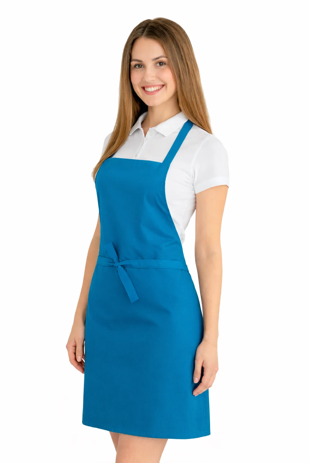 Fartuch wykonany został z mieszanki 50% bawełny i 50% poliestru o gramaturze 165–185 g/m². Dzięki temu jest lekki, przewiewny i jednocześnie odporny na częste pranie. Można go prać w temperaturze do 65°C, co pozwala na zachowanie higieny i świeżości. Kolor turkusowy pozostaje intensywny nawet po wielu praniach, a materiał nie kurczy się i nie traci swojego kształtu.
