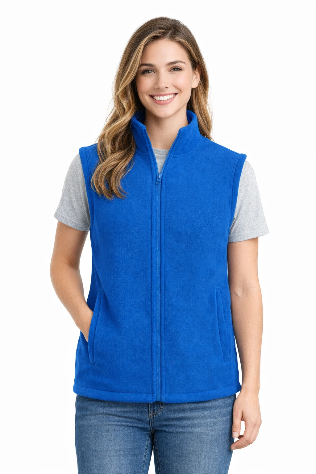Niebieska kamizelka polarowa zapinana na zamek to wygodna i funkcjonalna część garderoby na chłodniejsze dni. Wykonana z wysokiej jakości polaru zapewnia dobrą izolację cieplną, a jednocześnie pozostaje lekka i komfortowa w noszeniu. Klasyczny krój oraz praktyczne rozwiązania sprawiają, że kamizelka sprawdzi się zarówno w codziennym użytkowaniu, jak i podczas pracy czy aktywności na świeżym powietrzu.