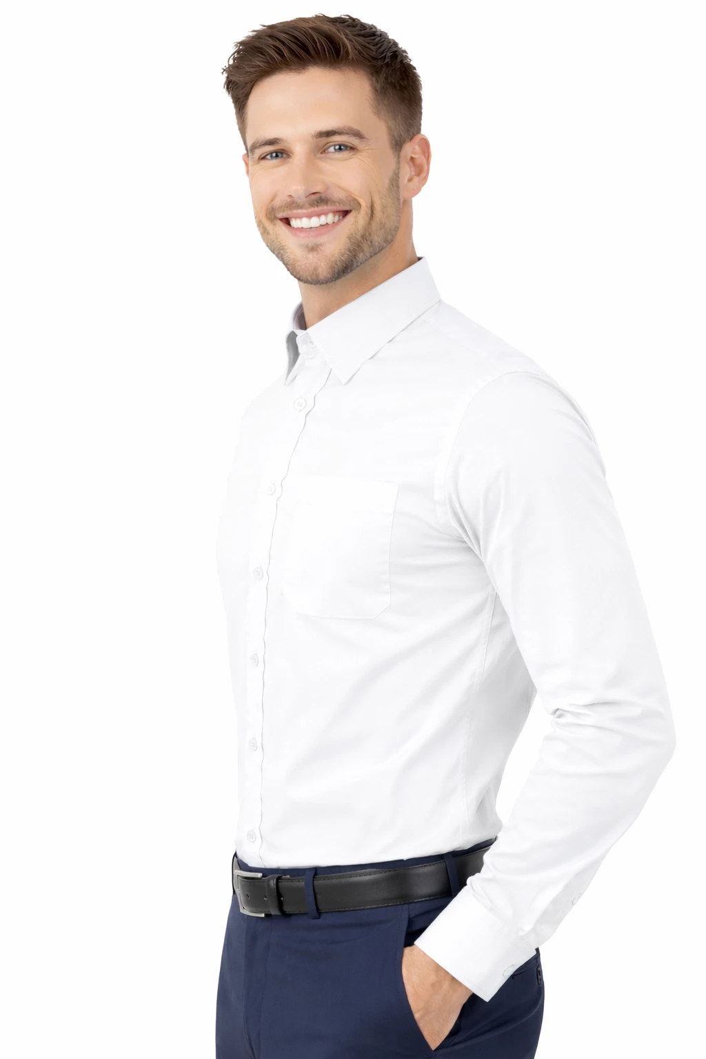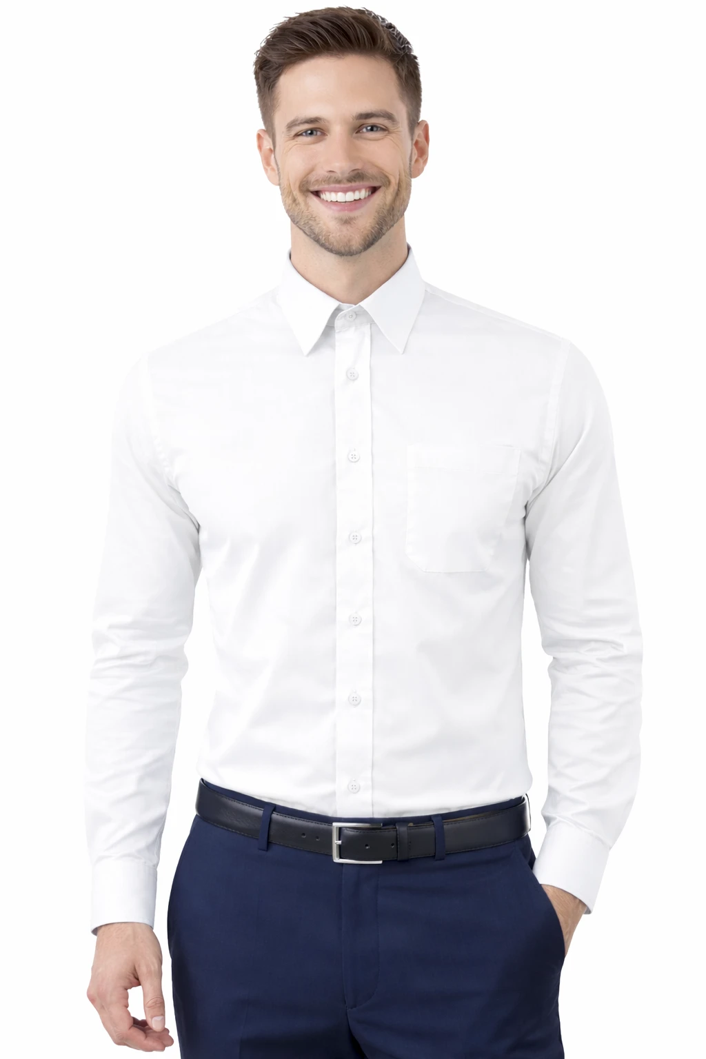 Koszula męska biała z długim rękawem to klasyczny i elegancki model stworzony z myślą o profesjonalnym wizerunku w środowisku biznesowym. Doskonale sprawdzi się jako koszula firmowa dla kadry zarządzającej, dyrektorów, menedżerów oraz pracowników wymagających nienagannego wyglądu.