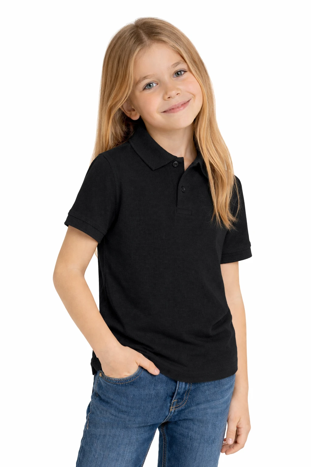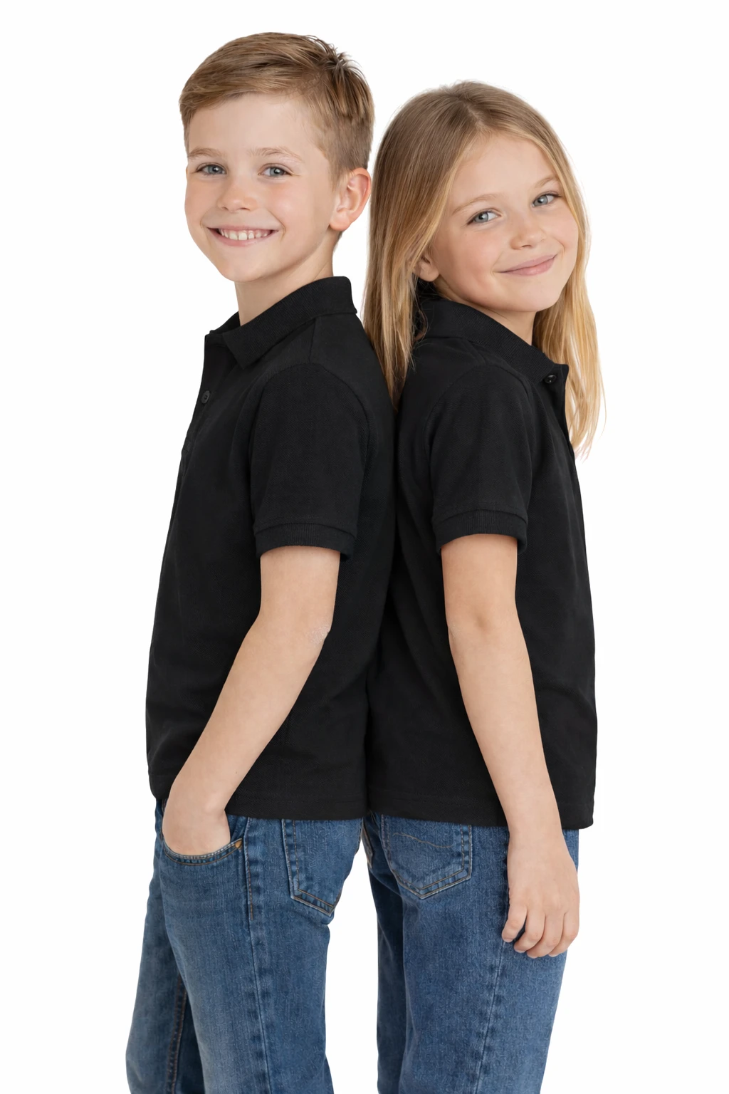 Koszulka polo dziecięca czarna to uniwersalny model, który doskonale sprawdzi się jako odzież szkolna, grupowa oraz pod nadruk. Klasyczny fason polo z kołnierzykiem i zapięciem na guziki zapewnia schludny, elegancki wygląd – idealny dla szkół, przedszkoli oraz wydarzeń okolicznościowych.