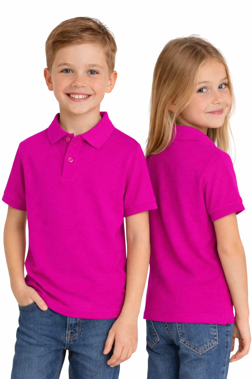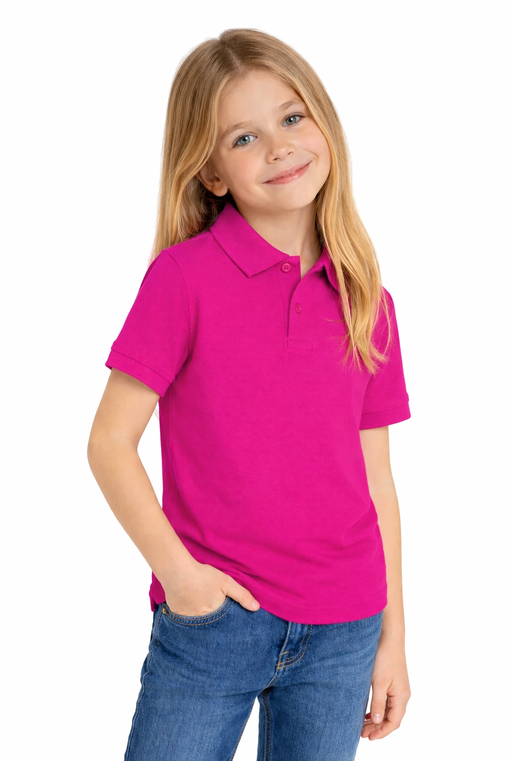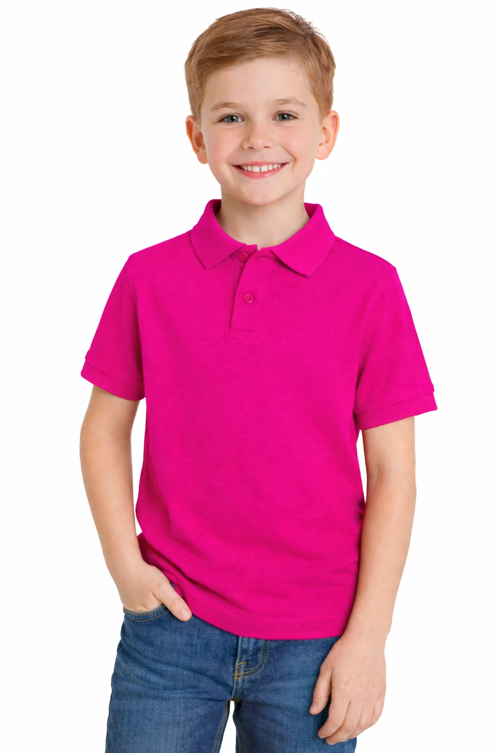 Koszulka polo dziecięca fuksja to uniwersalny model, który doskonale sprawdzi się jako odzież szkolna, grupowa oraz pod nadruk. Klasyczny fason polo z kołnierzykiem i zapięciem na guziki zapewnia schludny, elegancki wygląd – idealny dla szkół, przedszkoli oraz wydarzeń okolicznościowych.