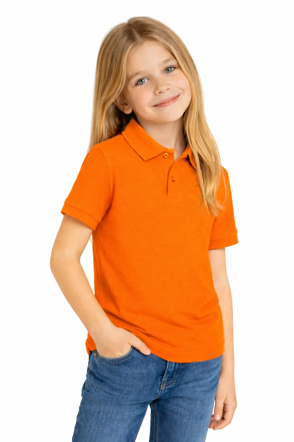 Koszulka polo dziecięca pomarańczowa to uniwersalny model, który doskonale sprawdzi się jako odzież szkolna, grupowa oraz pod nadruk. Klasyczny fason polo z kołnierzykiem i zapięciem na guziki zapewnia schludny, elegancki wygląd – idealny dla szkół, przedszkoli oraz wydarzeń okolicznościowych.
