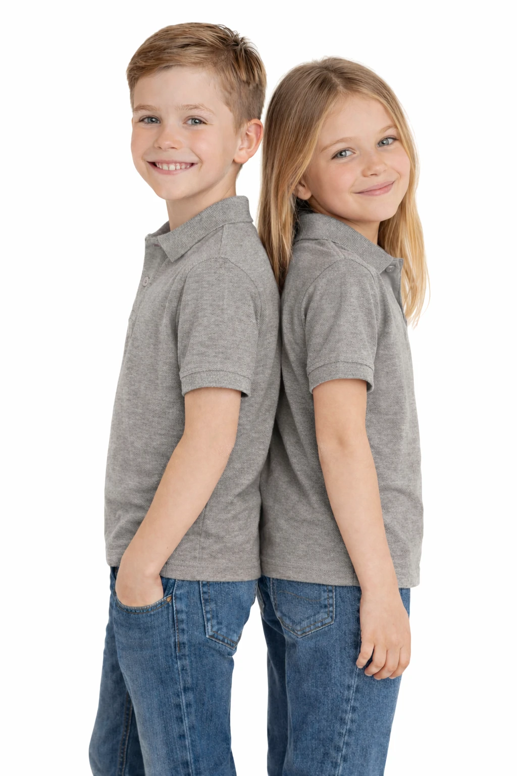 Koszulka polo dziecięca szara to uniwersalny model, który doskonale sprawdzi się jako odzież szkolna, grupowa oraz pod nadruk. Klasyczny fason polo z kołnierzykiem i zapięciem na guziki zapewnia schludny, elegancki wygląd – idealny dla szkół, przedszkoli oraz wydarzeń okolicznościowych.