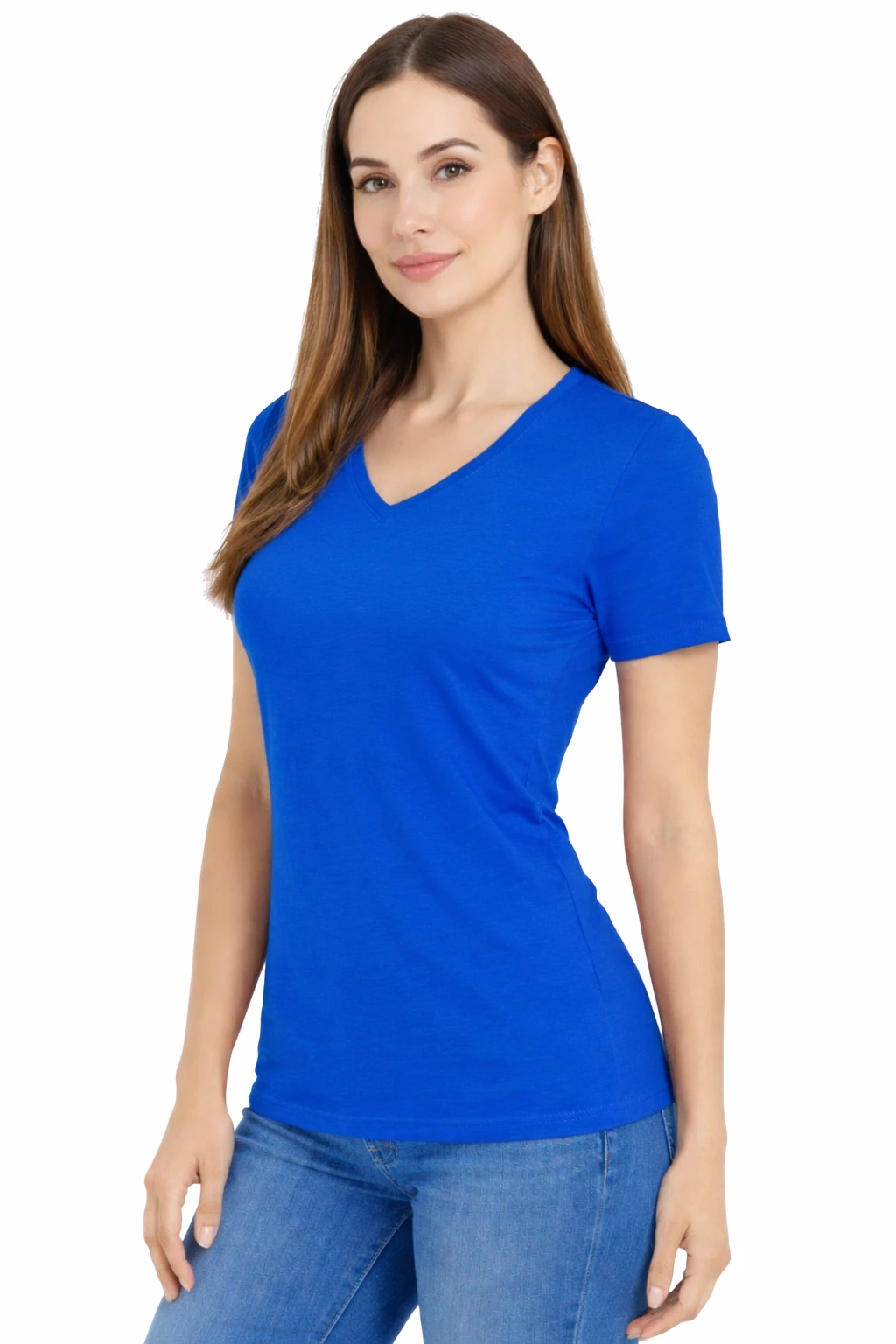 Jest to damska koszulka o wyprofilowanym kroju z krótkim rękawem i dekoltem w serek.
