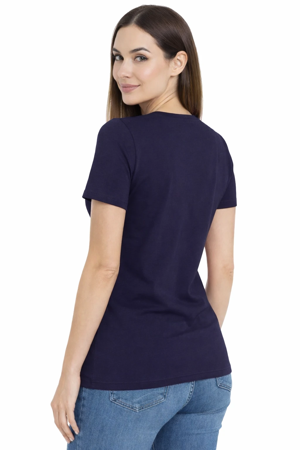 T-shirt damski koszulka z krótkim rękawem granatowa – bawełniana, wygodna i idealna do znakowania