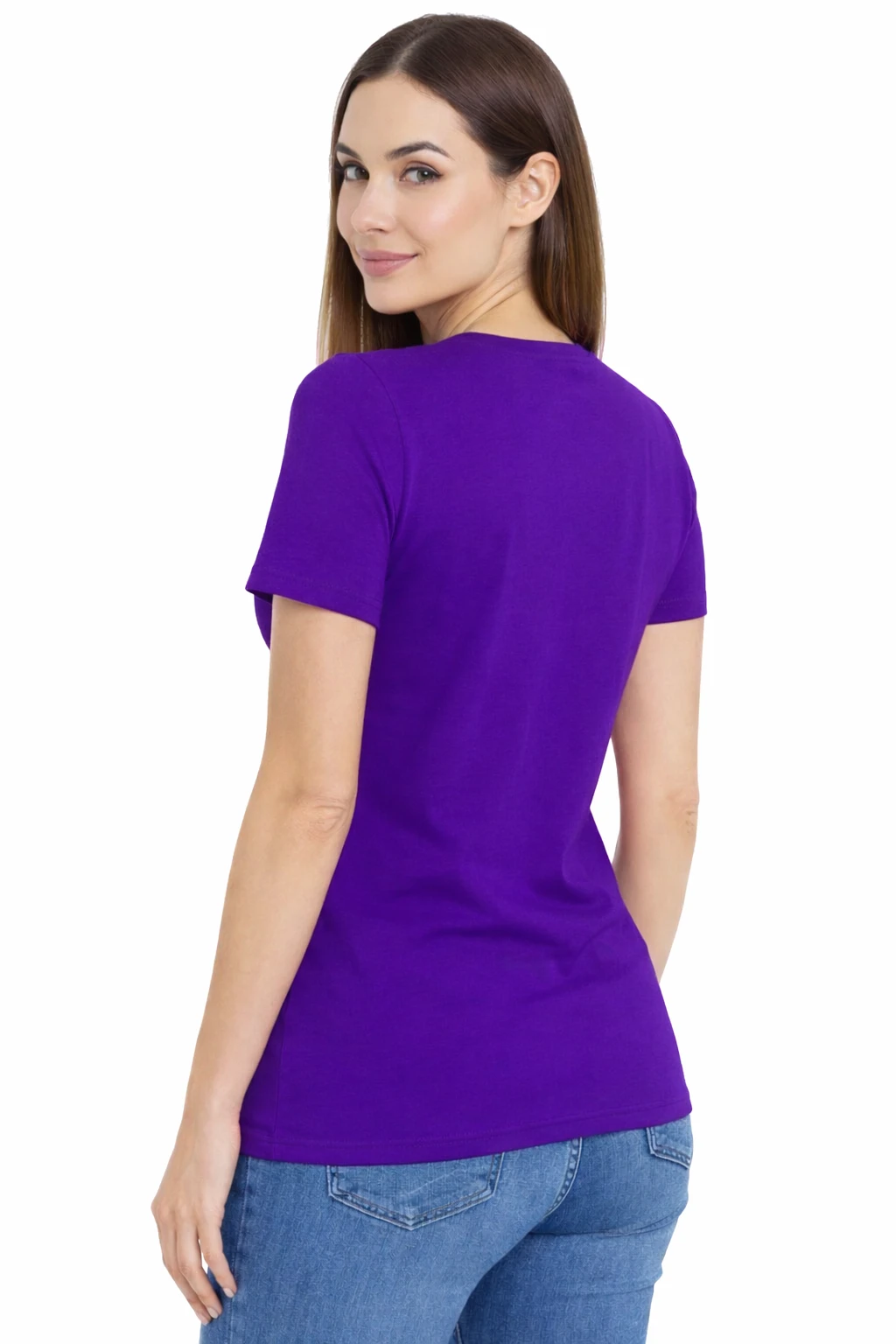 T-shirt damski koszulka z krótkim rękawem purpurowa – bawełniana, wygodna i idealna do znakowania